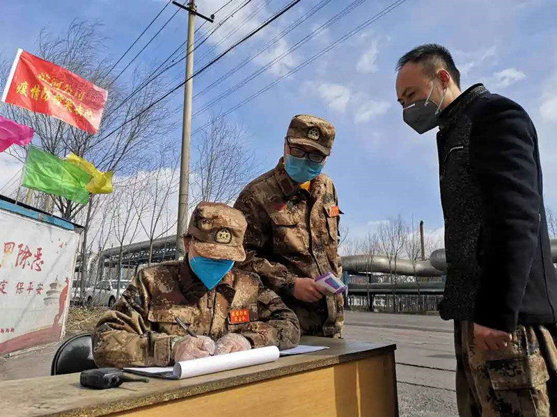 “請(qǐng)靠邊停車,我們需要給車輛消毒,請(qǐng)您下車做詳細(xì)登記并測(cè)量體溫?!?1點(diǎn)半不是上下班時(shí)間,雖然偶有人車進(jìn)出,但郗余亮?xí)r刻堅(jiān)守在刺骨的寒風(fēng)中,檢查過(guò)往人員和車輛,嚴(yán)格執(zhí)行公司對(duì)新冠肺炎疫情防控的各項(xiàng)要求?!耙咔楫?dāng)前,我作為公司員工,又是民兵,有責(zé)任也有義務(wù)沖鋒在前保護(hù)全廠員工和企業(yè)的安全,為了早日戰(zhàn)勝疫情,再苦再累我都能克服?!臂嗔琳f(shuō)。
